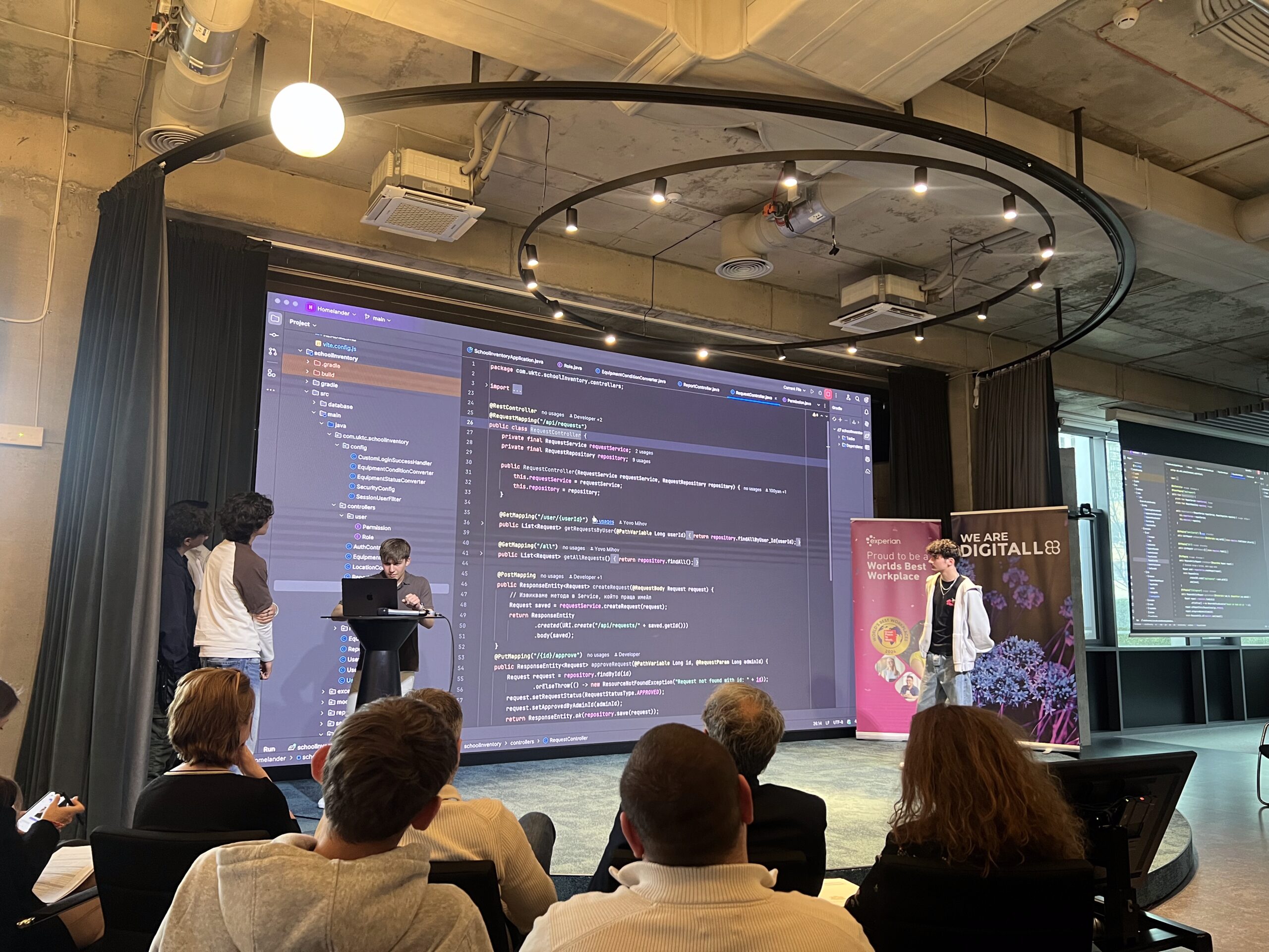 Конкуренцията е оспорвана, а журито трябва да избере сред добре подготвени и отлично представени проекти. В състава му влизат Цвети Кьосева – главен изпълнителен директор на Methodia, Димитър Иванов – ръководител в Schwarz Digits, Боряна Джонева – старши маркетинг мениджър от SoftServe, Тихомир Томов – съосновател на Raisen AI, инж. Красимир Илиев – заместник-директор в НПГ по КТС, и Весела Караянева – главен експерт в Дирекция „Професионално образование и обучение“ в МОН.