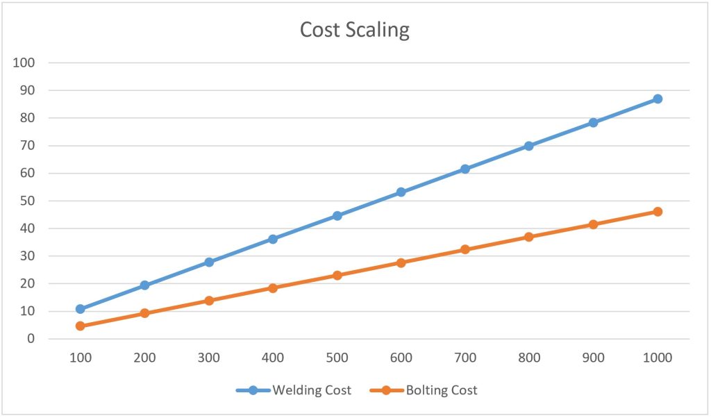 Figure 3. Cost Scaling Trends for Welding vs. Bolting
