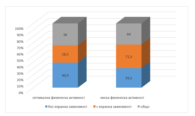 Фигура 2. Физическа активност и екранна зависимост (%)