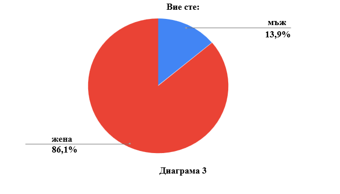 Повечето респонденти, попълнили формуляра, са жени – 86,1% от анкетираните лица.