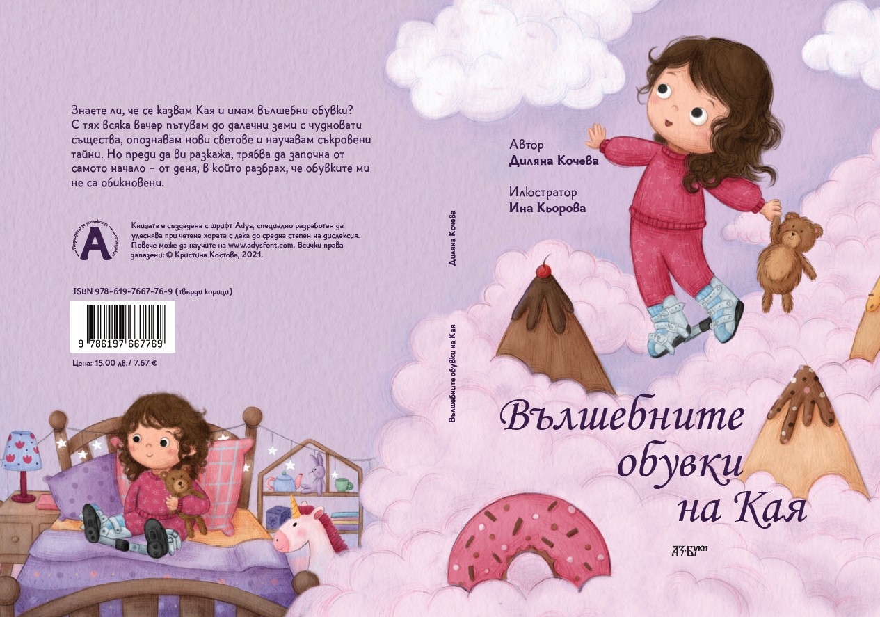 Книгата „Вълшебните обувки на Кая“ е вдъхновена от личната история на Диляна Кочева – майката на Кая, която е с еквиноварус. Национално издателство „Аз-буки“ реши да застане зад тази кауза, защото целият екип истински вярва, че на социално значимите теми трябва да се дава гласност.
